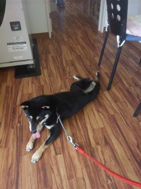 おトイレを済ませたさくらちゃんはお店に入るなり体温を下げるため伸びてます(笑)