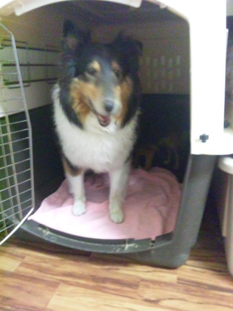 シーちゃんはごはん待機でハウスの中で準備