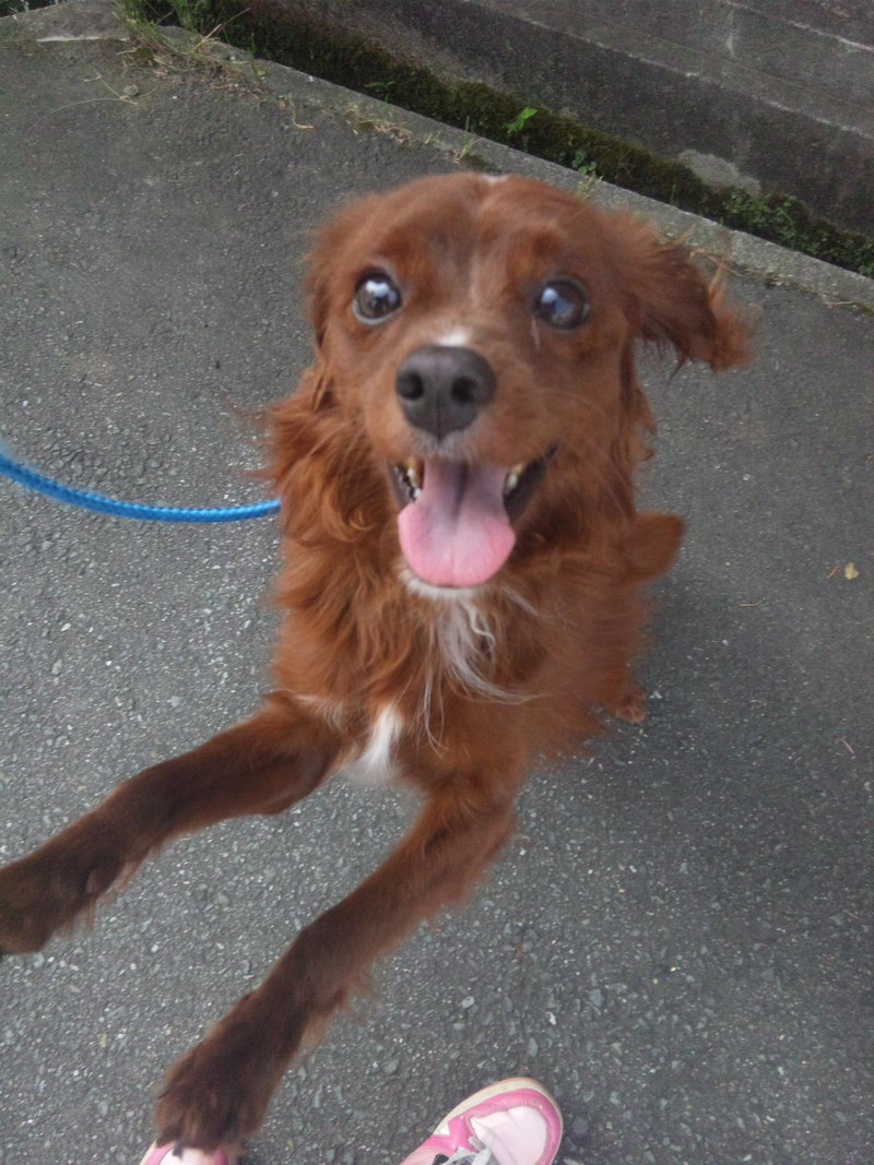 猛暑日にもかかわらず元気いっぱいにお散歩してます!