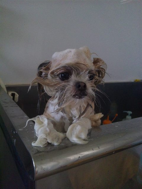 シャンプー中のまりもちゃん