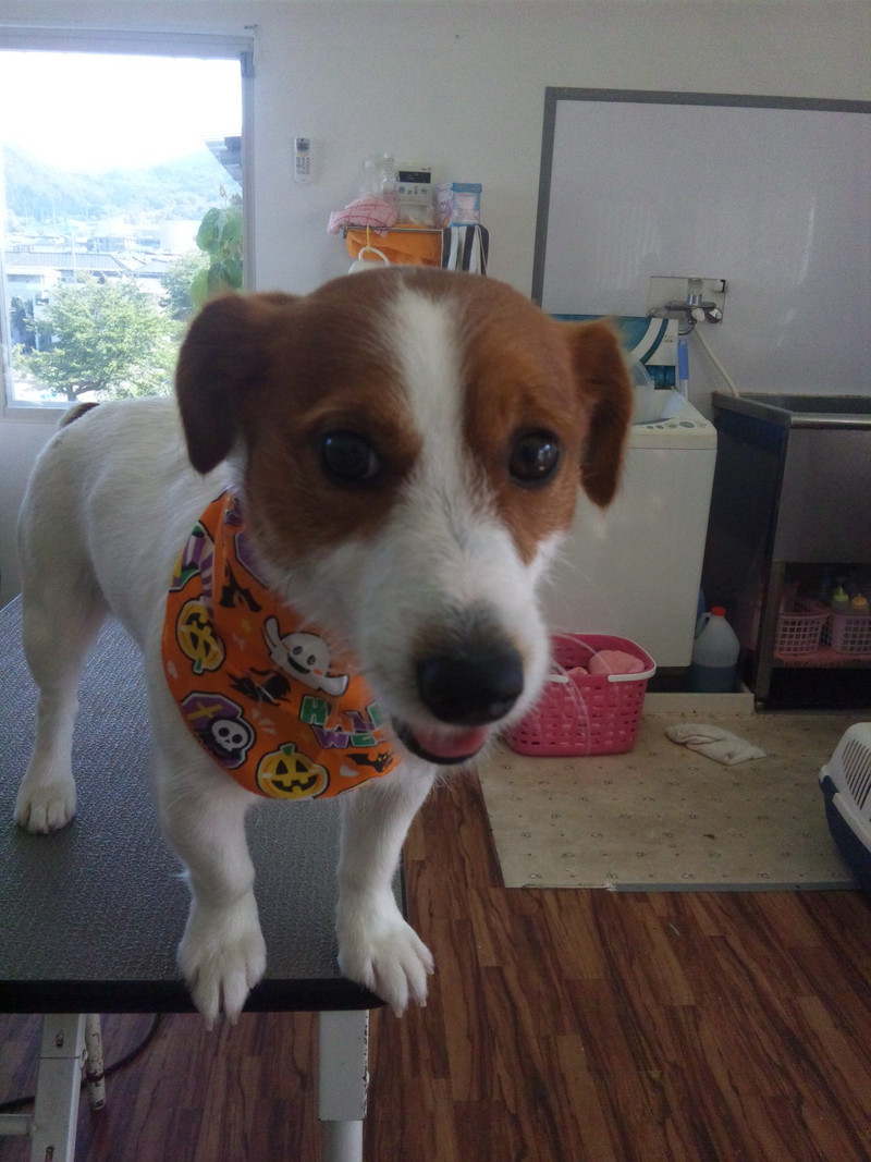 今日もハロウィンバンダナを付けて、ニコニコしてくれました〜