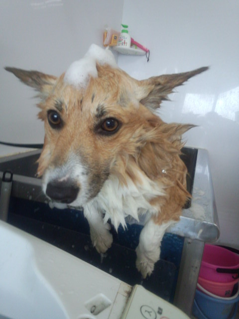 シャンプー中サスケくんです - 山形市 ペットホテル トリミング