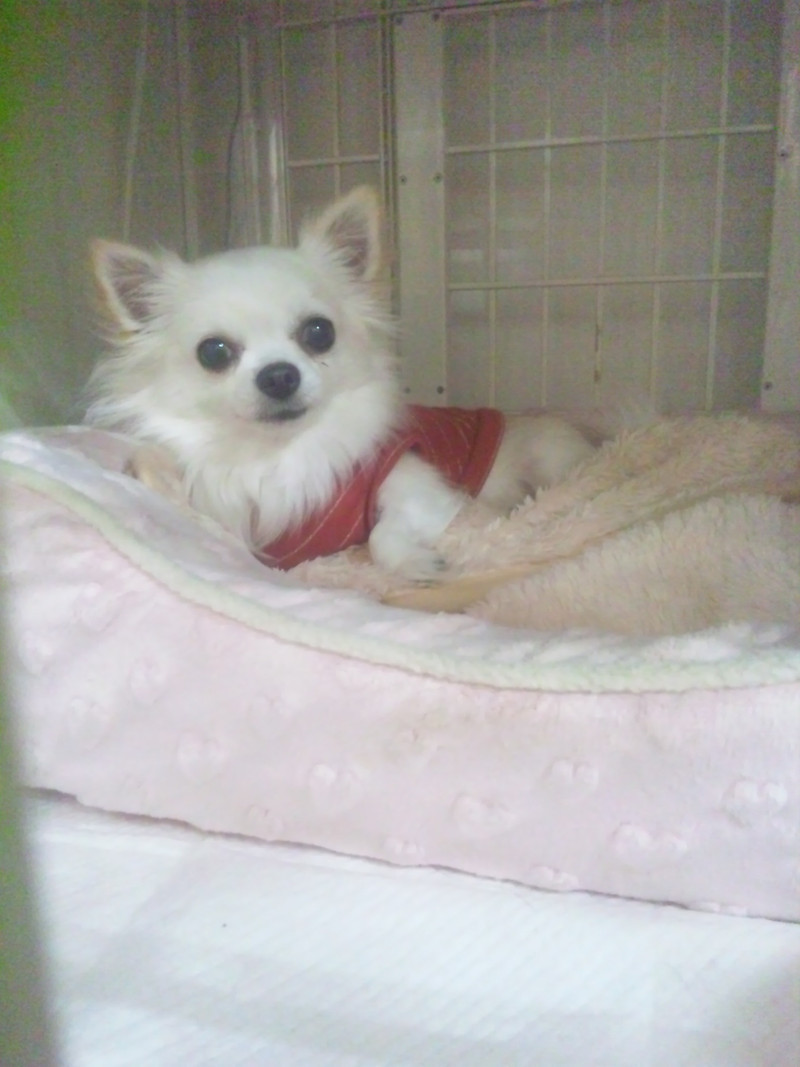 トリミング室をいっぱい探検したあとはお気に入りのベッドに入ってぬくぬくするありすちゃん〓