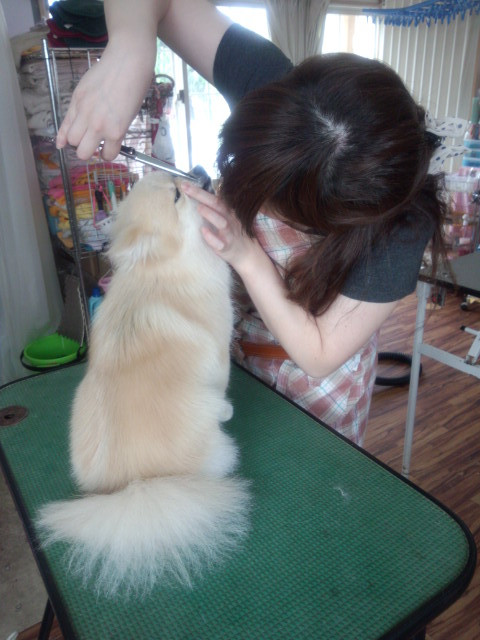 只今おヒゲのカット中です