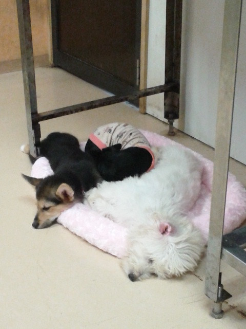 仔犬トリオもテンションがた落ち…協議の結果 ふて寝してやり過ごす事になったようです。起きたらたくさん遊んであげましょう!!