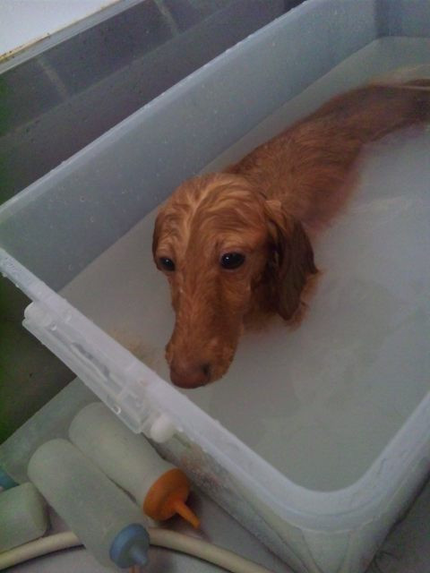 最初はちょっと怖がっていましたが、一回浸かったら、結構気に入ったようで出てこなくなりました〜♪(笑)仕上がりもフワフワでした!