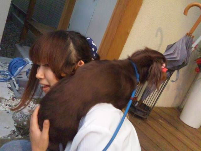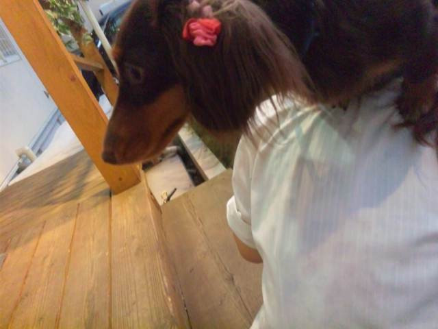 お散歩へ行きましょう!と出てみたものの、お友達作戦で一緒におでかけした看板犬ルイくんにやや圧倒され、スタッフにのじのじ避難