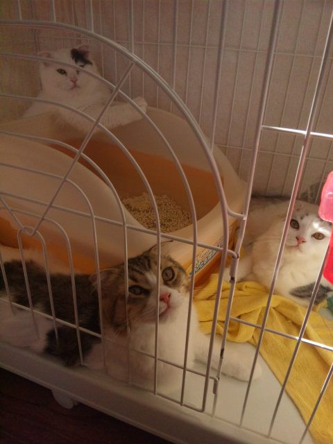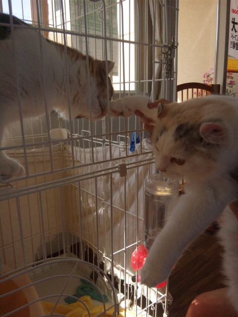 早くお家のニャンコ隊とも仲良くなってほしいなあ