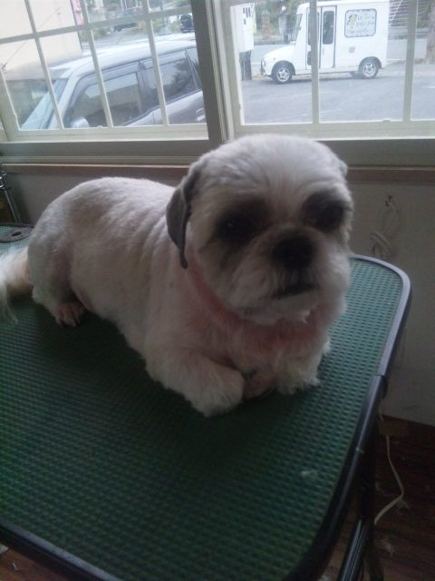 スタッフ顔を歪めながらカットしていたらさくらちゃんのお顔がクニャリ…
