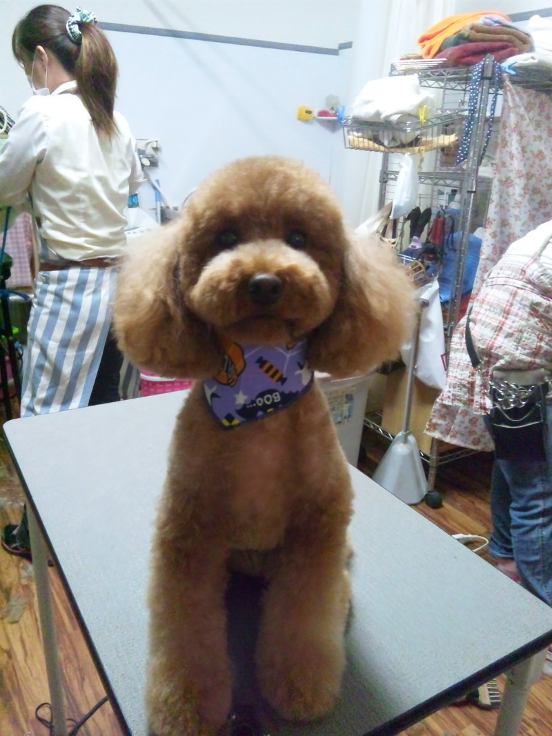 今日はスッキリカットしてハロウィンバンダナ装着です
