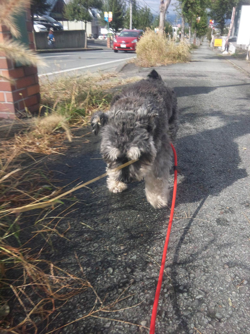 今日は空気が澄んで青空の下ピースちゃんは元気良くお散歩しました〜爪きりもお利口さんにできました