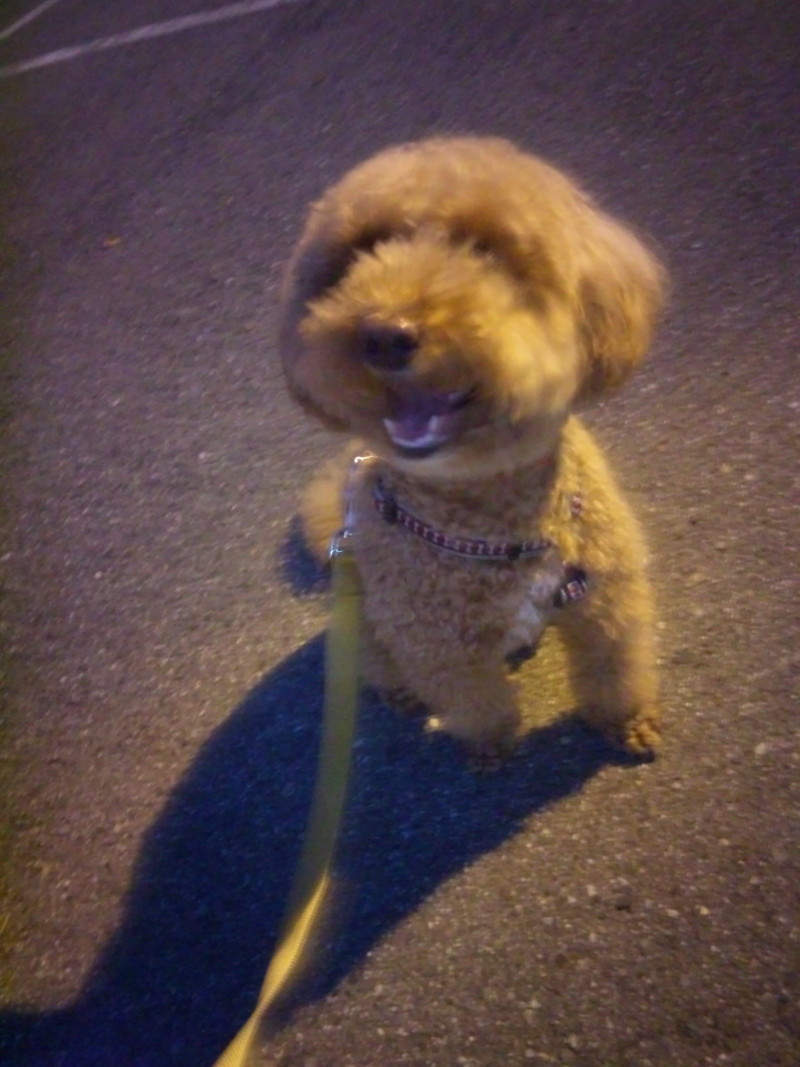 お散歩中、車が来なくなるのを待っている間にお座りして待機してくれてたうにちゃんにキュン