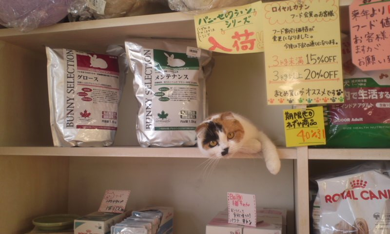 入荷致しました、ラビットフードとともに並ぶ当店自慢の招き猫