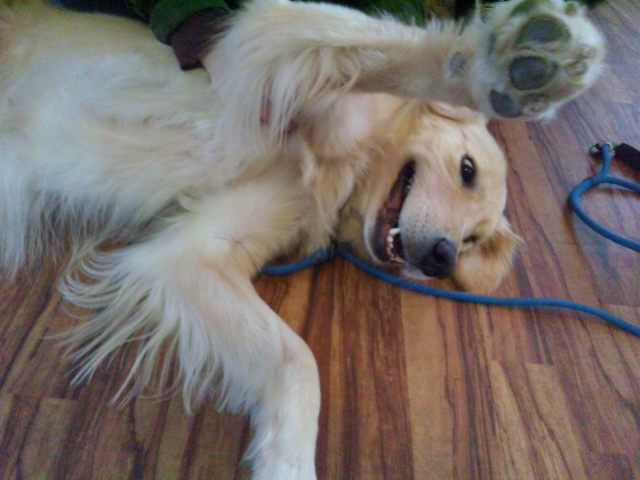 なでなでするとゴロンとして遊びに誘ってくれるんです