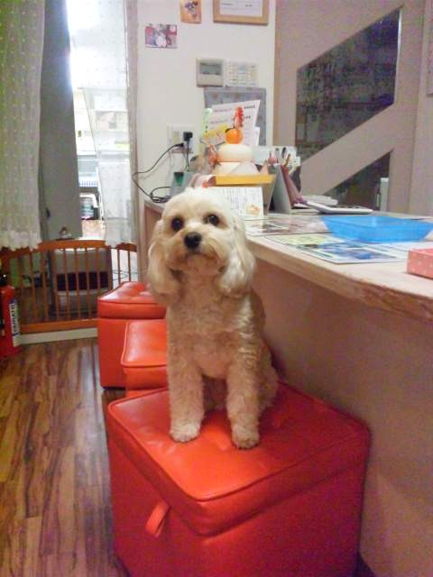 少しスタッフに慣れてきてくれて膝の上にもピョンします