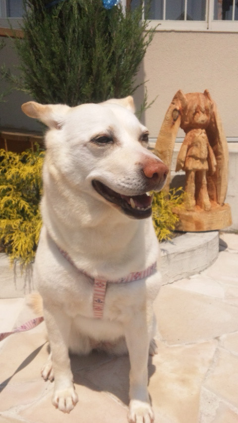シャンプーしてふわふわになったので大好きなパパと帰りはお天気がいいのでお散歩しながらのご帰宅
