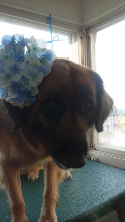 今日は耳に花飾り付けて撮影チャレンジのひめちゃんです