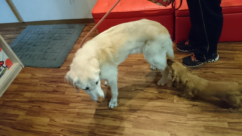 お泊まり中のゴローちゃんを後ろにつけてテクテク歩く姿がアヒルの親子みたいで可愛いなぁ