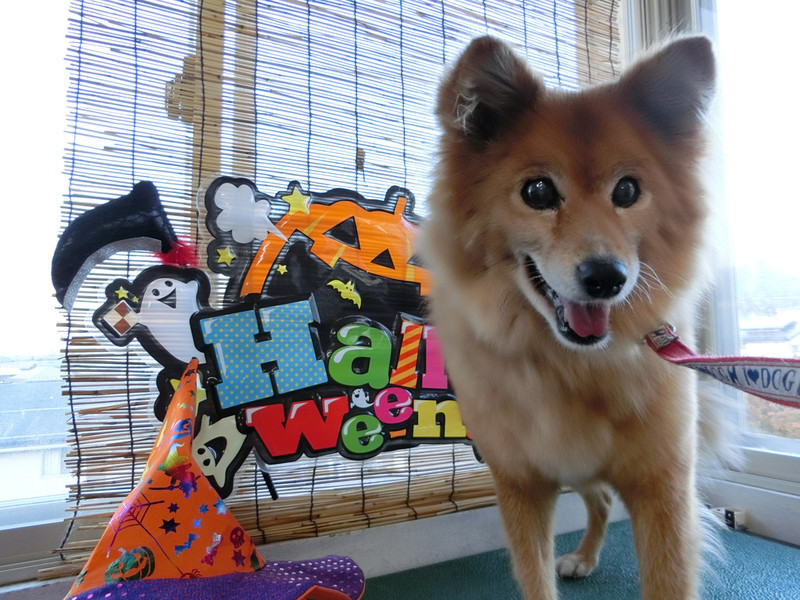今回ハロウィンにちなんでオシャレしてみましたが…見事にフワフワな毛に隠れちゃいましたね