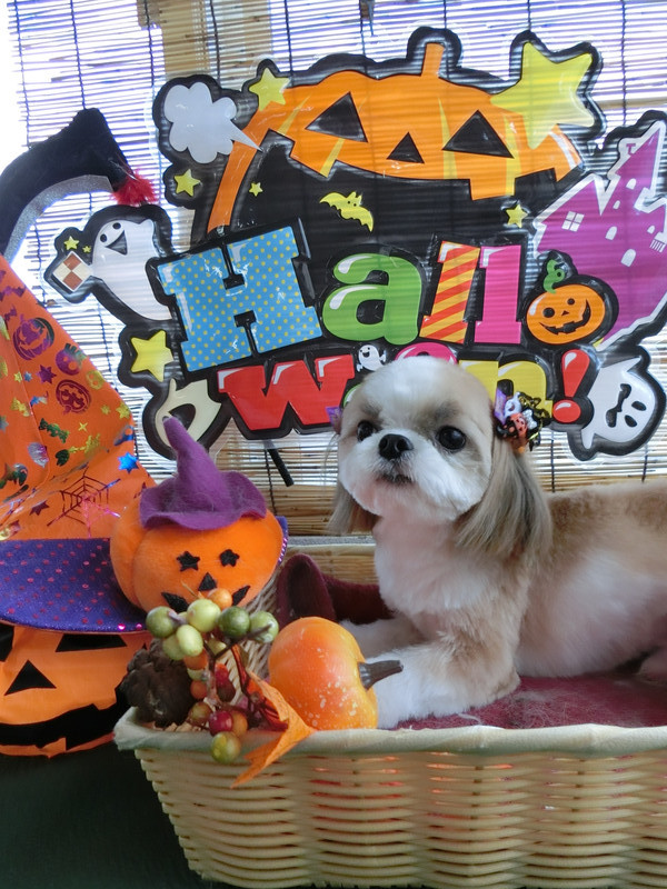 今日はハロウィンリボンを付けて完成です
