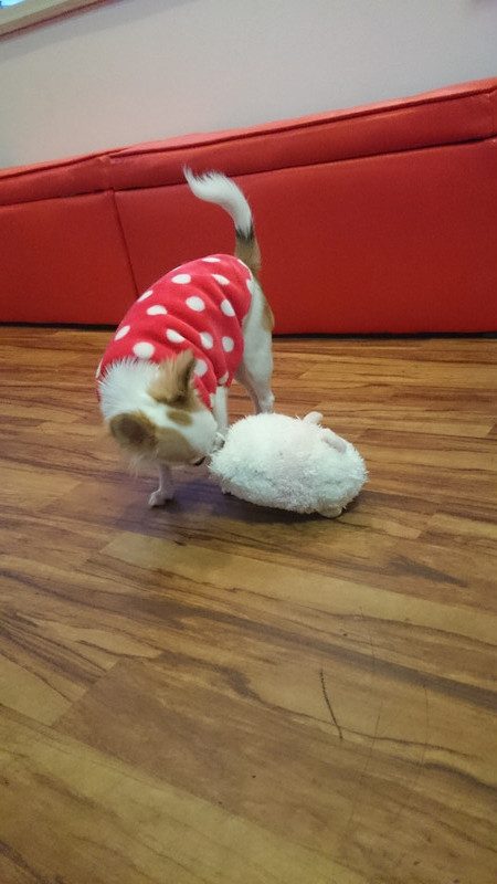 おもちゃで遊び中のバジルちゃんです