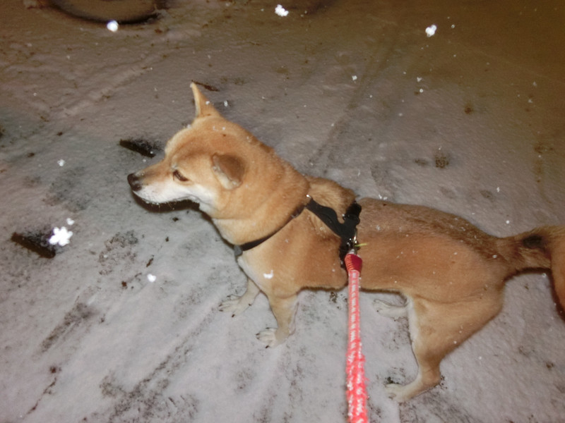 雪降る中今日も自慢のしっぽをブンブン振り回しながら楽しくお散歩に行ってきました