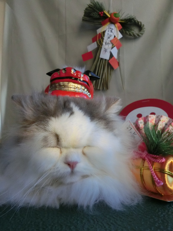 スタッフに頭に獅子舞を乗せられても微動だにしないおーちゃんがかわよす