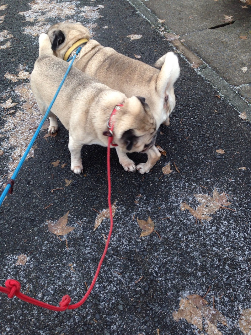 途中歩きたくないと止まればみるちゃんが寄り添ったり、まりもちゃんが体当たりしたりと励まし合いながらのお散歩でした