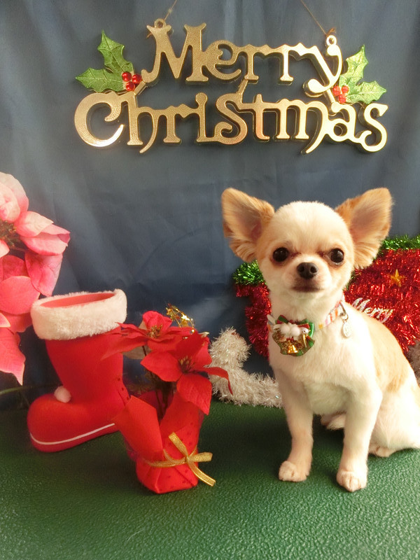今日は首にクリスマスを意識してベル付きリボンを着けてみました