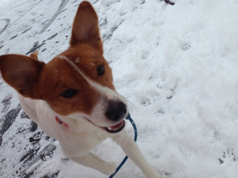 お外は雪が積もって飛び跳ねながら遊ぶマロンちゃん