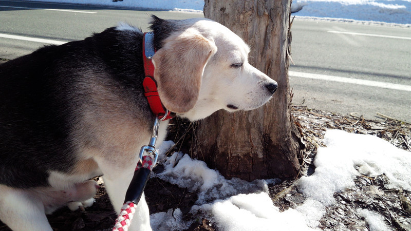 お日様も出て暖かい中のお散歩にハッピーちゃんも少し眠そうです。笑