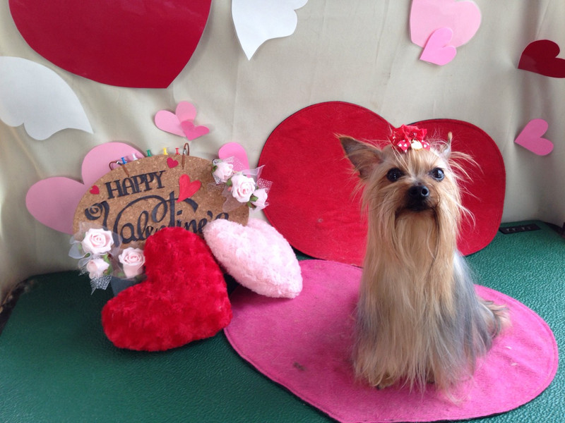 今日は頭にバレンタインのリボンを付けて完成です