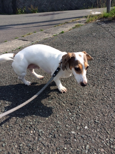 お泊まり中のぽちっとちゃんです。元気いっぱいでぴょんぴょん跳ねています!楽しくお散歩しています。お泊まり頑張ろうね!