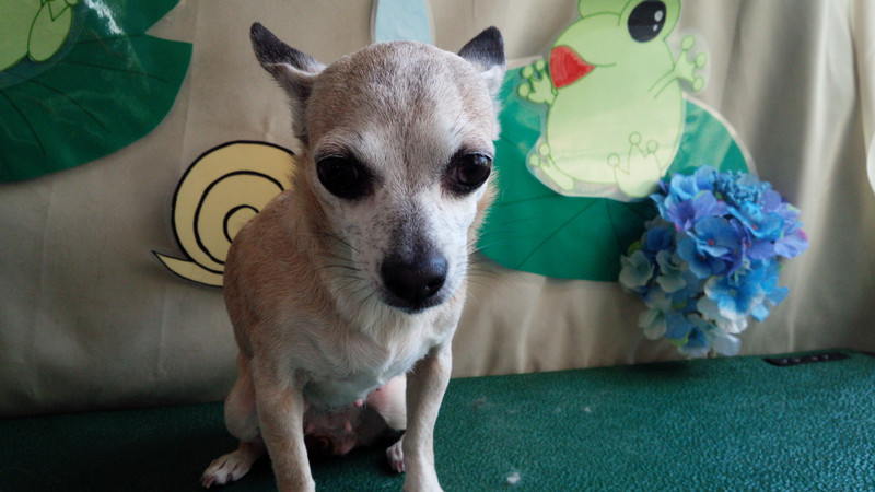 いつもお洋服をきているリノちゃんですが、最近暖かいので今日はお洋服なしでした