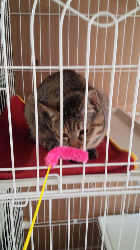 今日朝スタッフが来ると昨日チャッピーちゃんのケージの脇に置いておいた猫じゃらしが無いฅ(º ロ º ฅ)