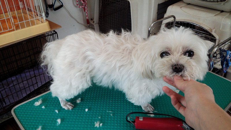 お泊まり終了し、カットしてお帰りのモモちゃんです