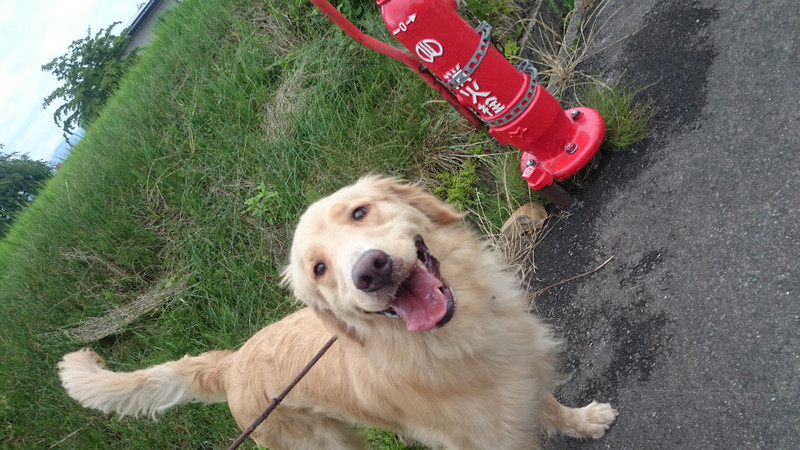 道行く人が撫でてくれると、しっかりお座りしてくれる優しいアビーちゃん