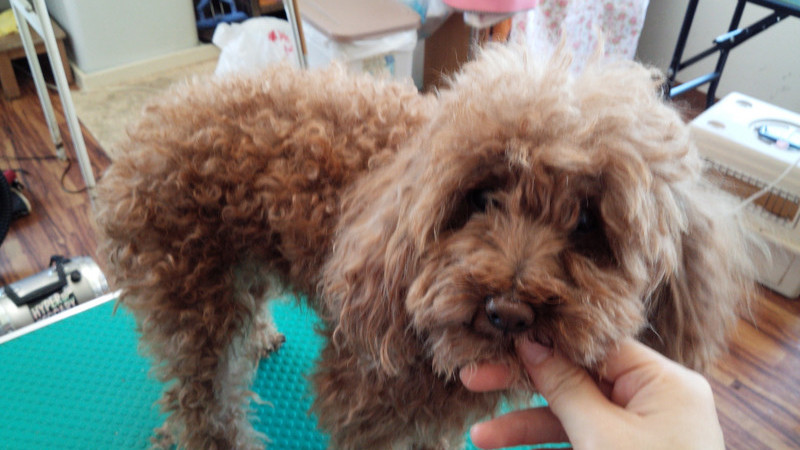 パパ曰わくカット後は毛がないことを気にするようで、お店に来ると大好きな毛がなくなる~と思っているようです( ´艸`)