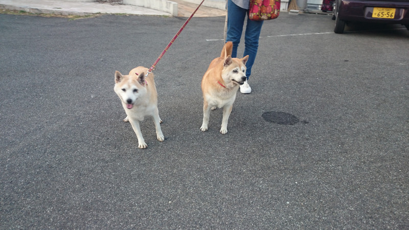 二人とも元気いっぱいお散歩にこれからいってきます