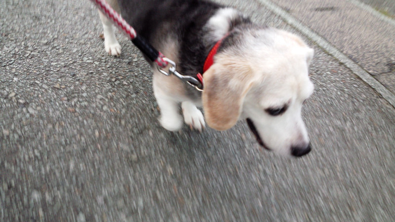 今日はお散歩中にビーグルのお友達が出来たハッピーちゃん