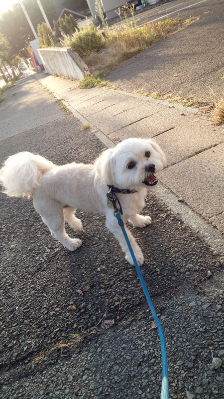 尻尾を上げて楽しくお散歩です