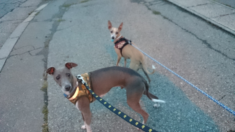 軽やかに歩くラロちゃん&ロマちゃんの後ろを必死に付いていくスタッフ…