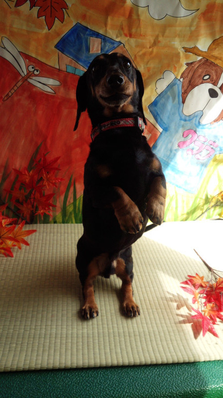 写真撮影ではおもちゃを見せると立ってアピール