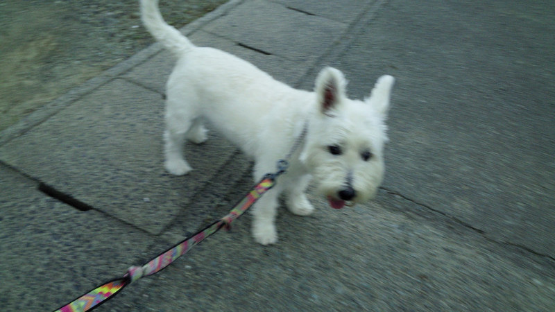 近所のわんちゃんとお互いに見つめ合い動かなくなる場面も( ´艸`)