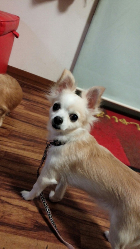 あまり自ら寄ってこようとしないお二人ですが、お散歩後マロンちゃんがスタッフの膝に来てくれました