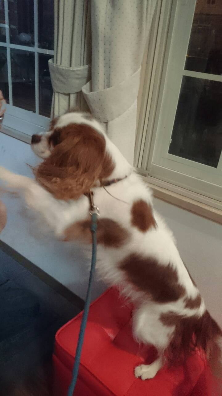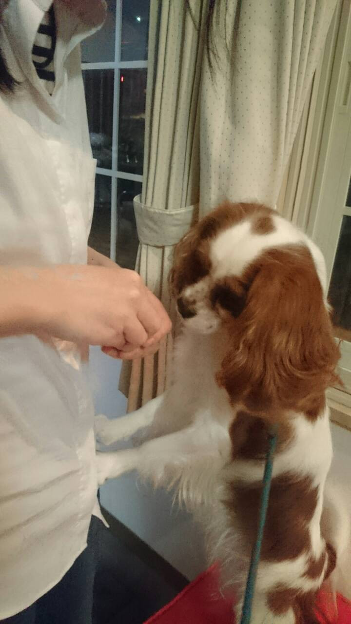 お散歩終わりにスタッフにおやつをおねだり(*´罒`*)♡