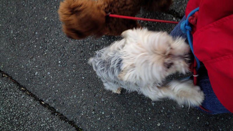 お散歩中、スタッフの匂いが気になるご様子
