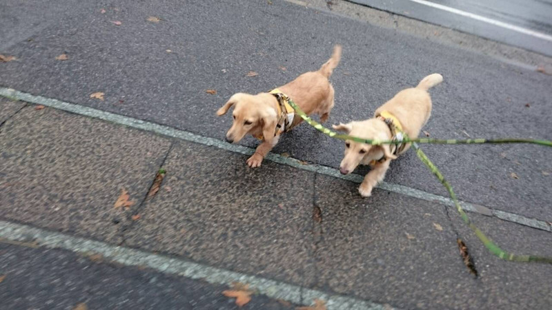 今日はあいにくの雨模様でしたがお天気にも負けず元気いっぱいお散歩へ行ってきました