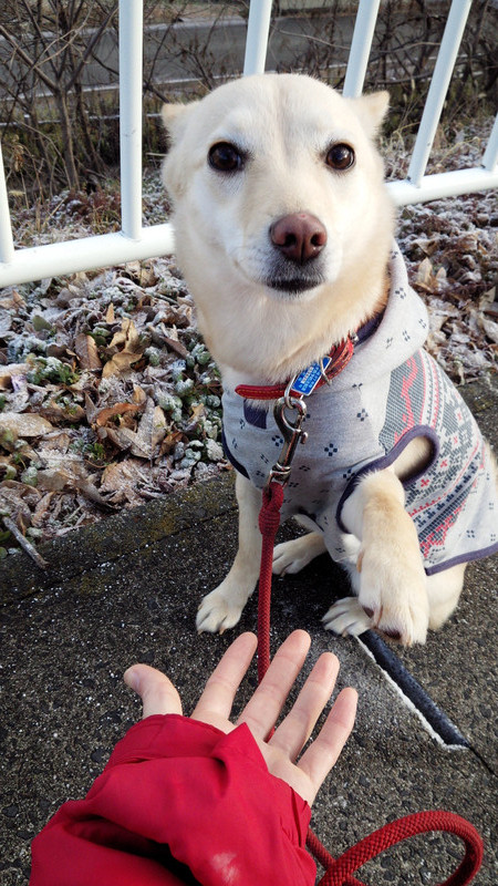 最近、お散歩中にお手やタッチなどをしてコミュニケーションをとっているスタッフ