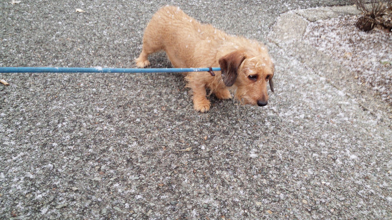 雪が降る中お散歩へ出発